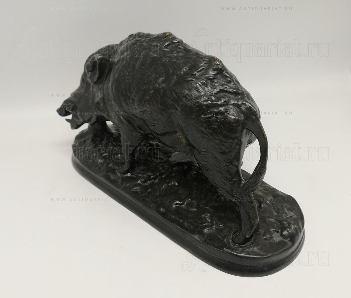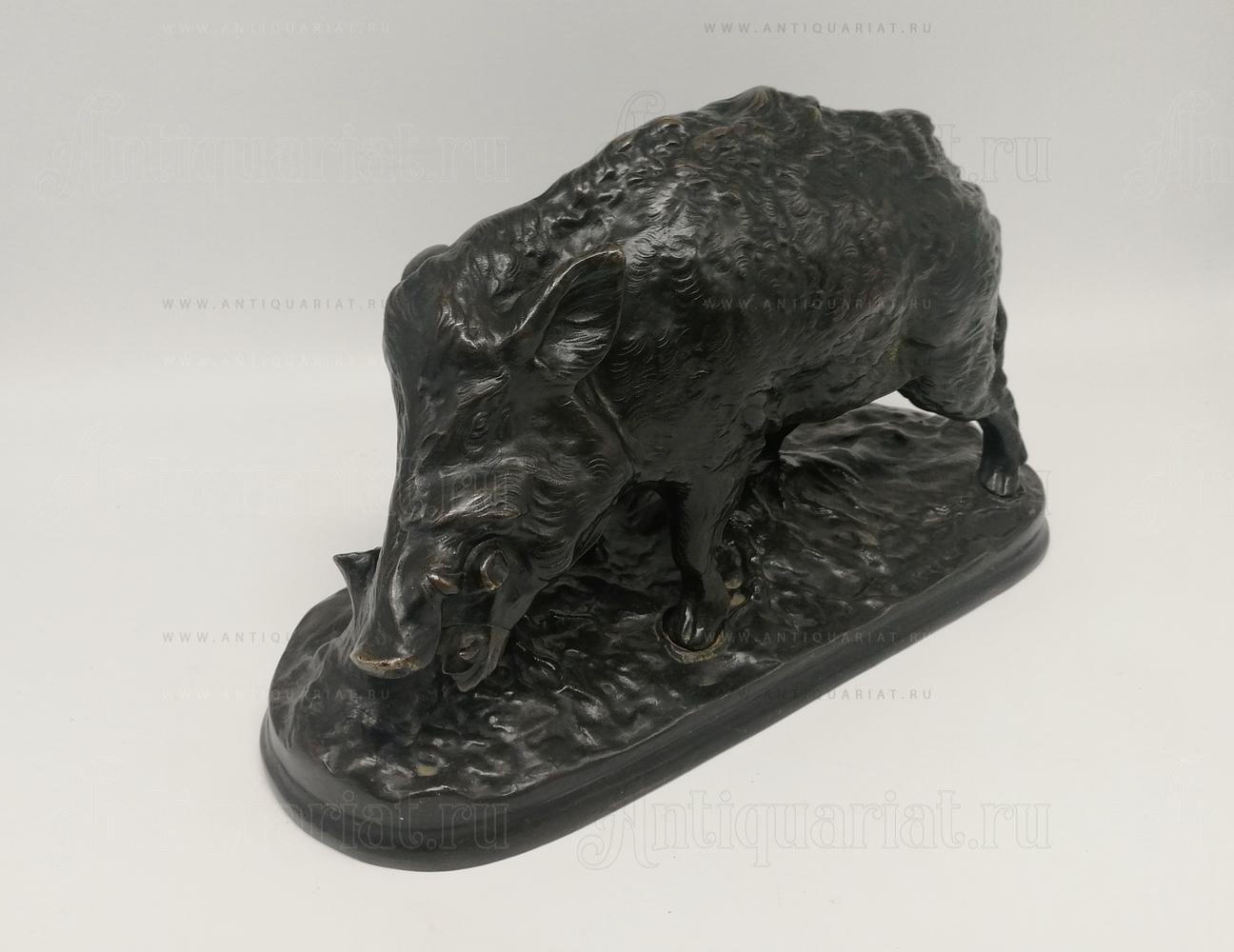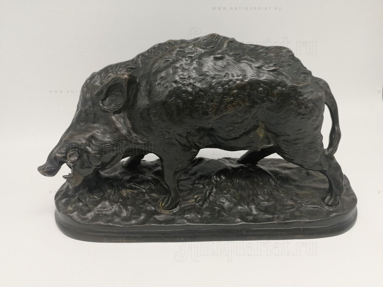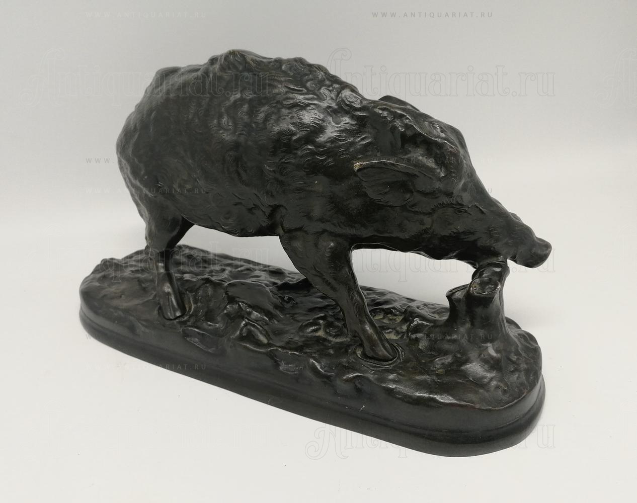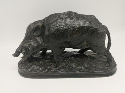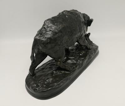 В композиции изображён вепрь, грызущий корень дерева. Скульптору удалось натурально передать естественную динамику животного, его свирепость и силу.