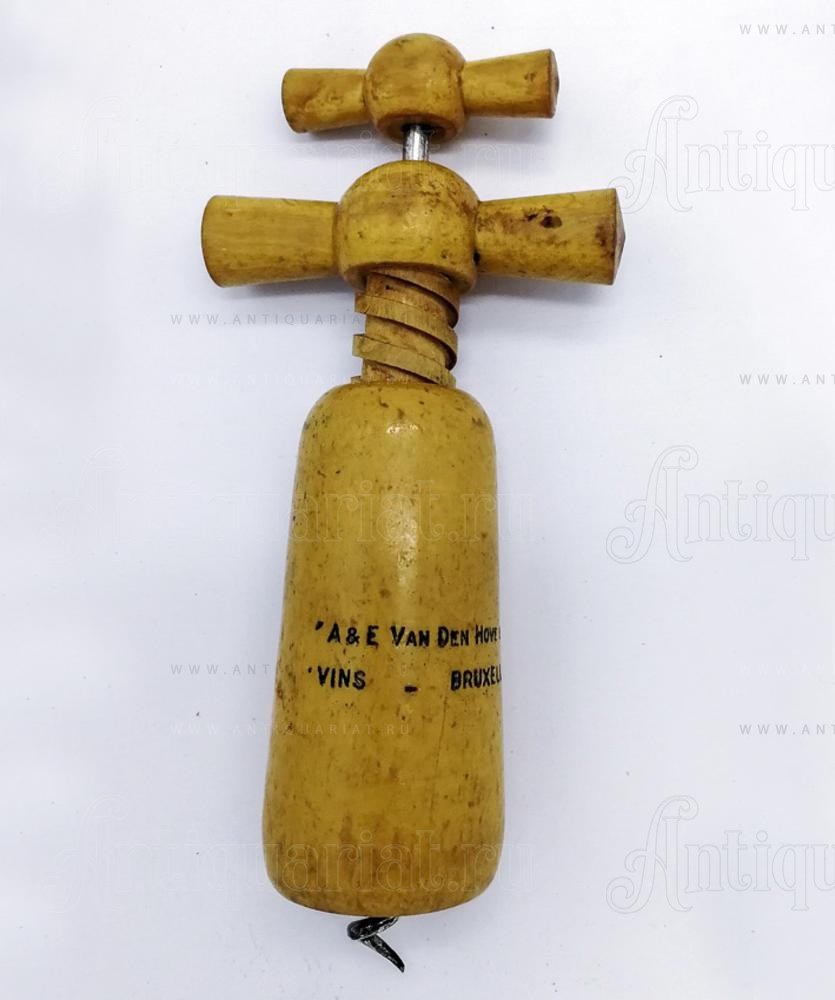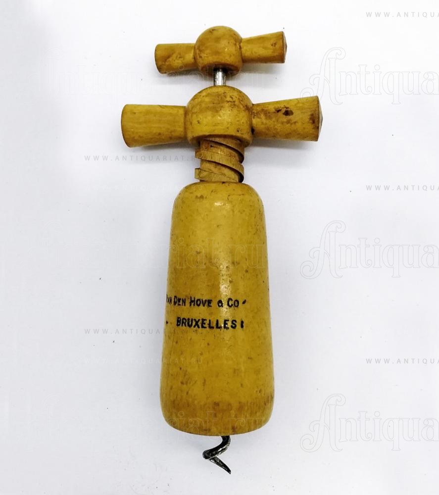 Штопор деревянный механический, изготовлен во Бельгии. Двойная ручка. Выполнен из самшита. Рабочая часть оборудована проволочной спиралью.