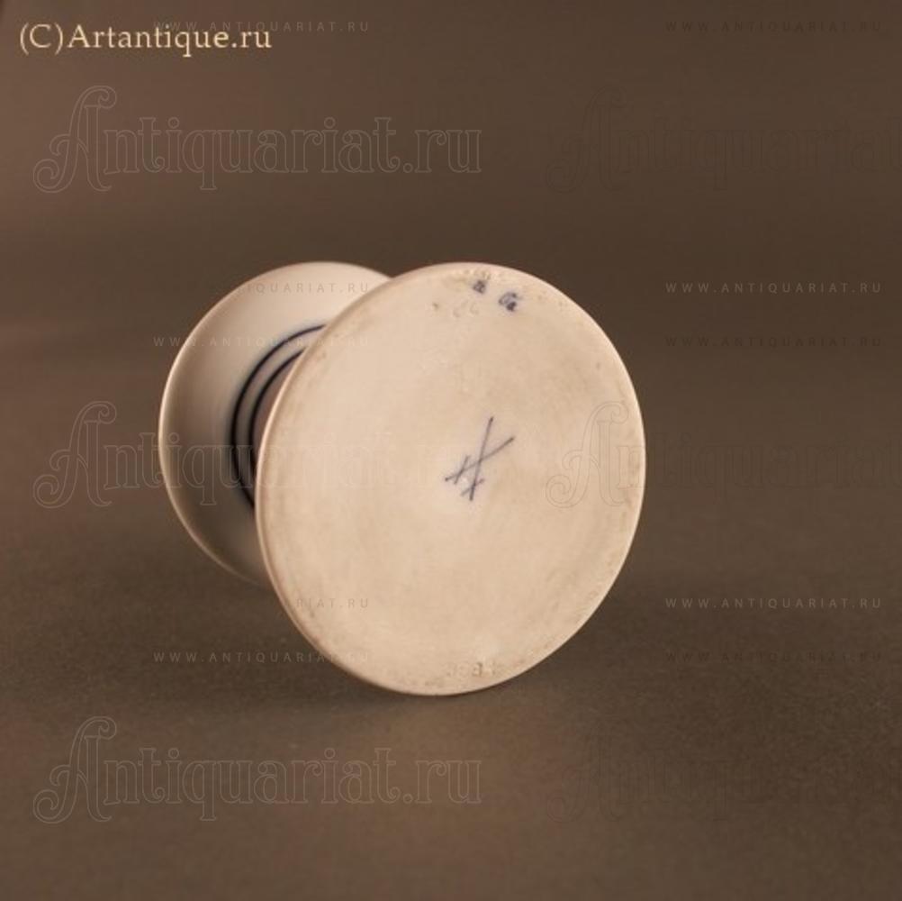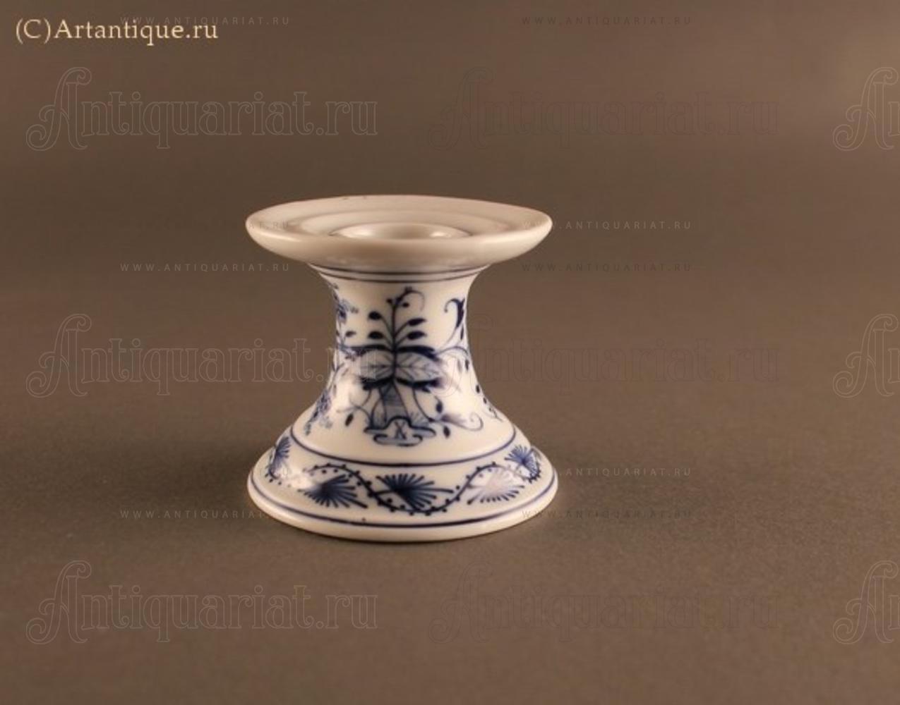 Небольшой подсвечник с традиционной "мейсенской" росписью, исполненной кобальтом ("луковичный" орнамент).