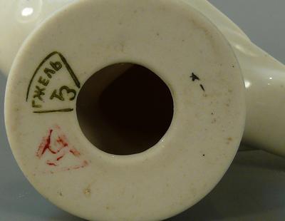 В XVIII веке к Гжели приходит слава крупного гончарного района, производящего художественную майолику. В начале XIX века в результате экспериментальных работ по созданию фарфора был получен так называемый «полуфаянс», роспись которого выполнялась синей смальтовой краской. И, как высшее достижение керамического искусства – с 1806 года – освоен выпуск фарфора, отличавшегося яркой многоцветной росписью с использованием золота, люстровых красок.
