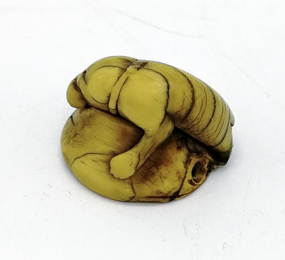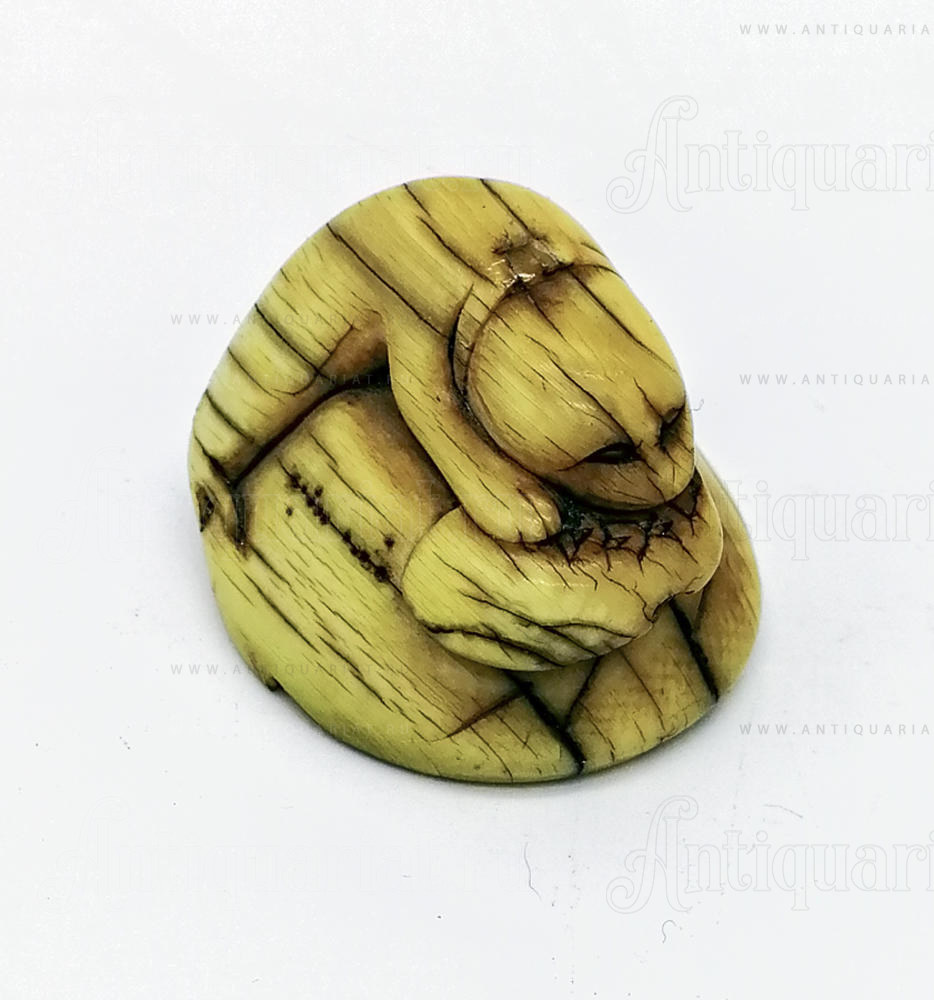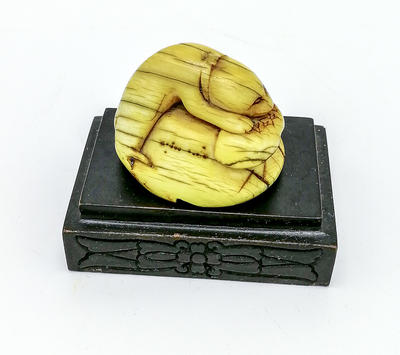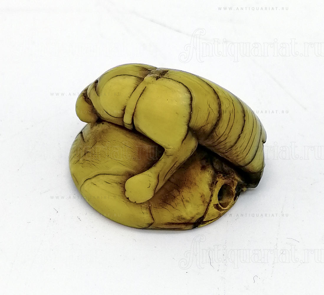 Аналогичное нецке по стилистике и технике исполнения находится в собрании государственного музея востока - "Собака сидящая на мешке" (кат. №361).