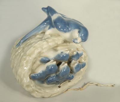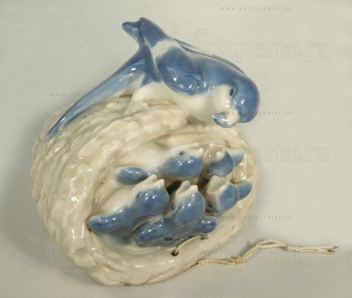 Композиция выполнена в виде ласточки, сидящей на краю гнезда с птенцами.