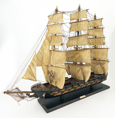 Коллекционная модель трёхмачтового парусника - испанского фрегата XVI века, принимавшего участие в "Непобедимой армаде".