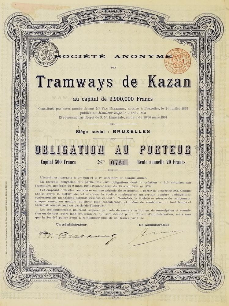 Облигация "Tramways de Kazan"