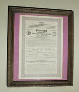Представленный документ в отличной сохранности. Оформлен в раму под стеклом. Размер указан по раме.