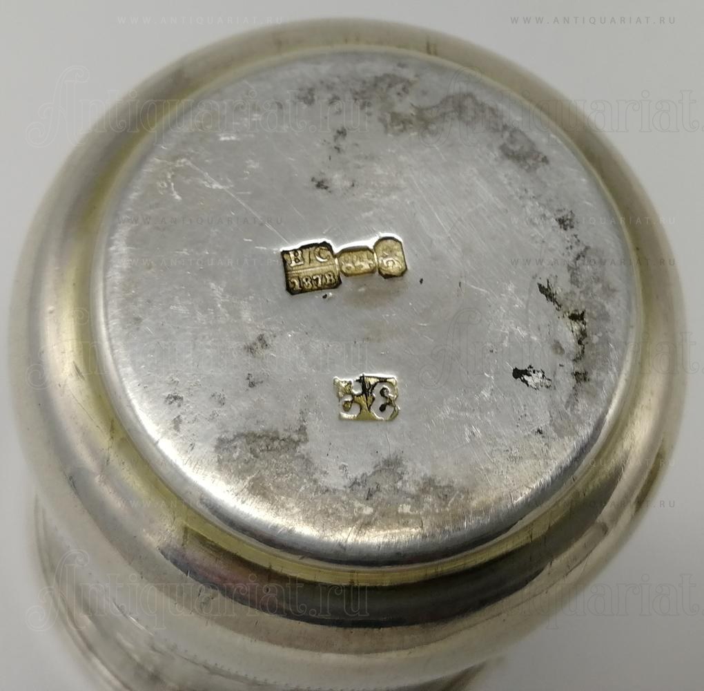 Клеймо пробирного мастера "В|С" 1878" (Cидоров Владимир Николаевич ), клеймо мастера "З.З" (неизвестный мастер , 1871-1880, стаканчики, солонка, ГИМ), герб Москвы