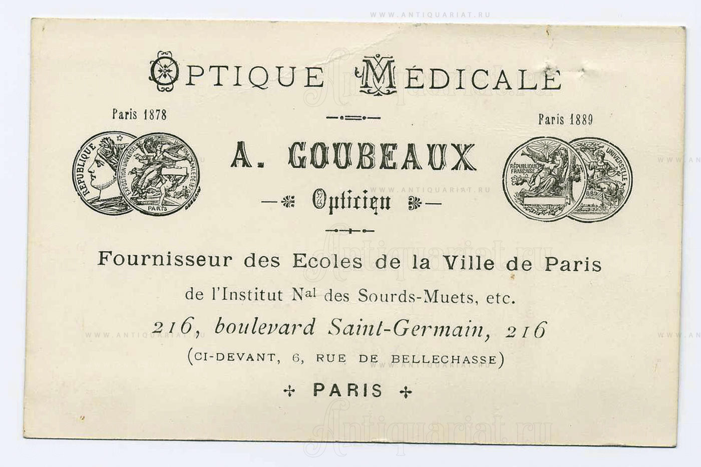 Надписи "A. Goubeaux, 6 rue Bellechasse, Paris " и номер 134168. Предмет в хорошей сохранности