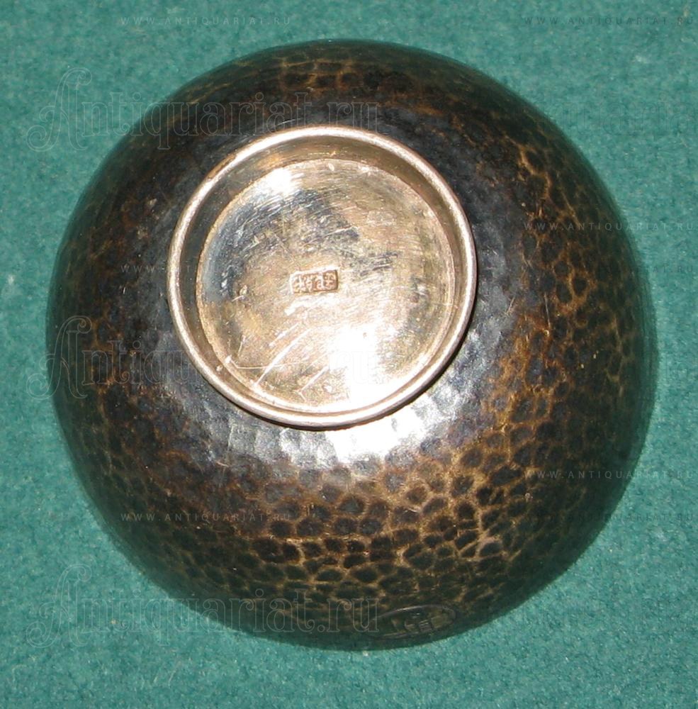 Чарки для саке - отеко. Выполнены из серебра в характерной для японского ювелирного искусства .технике ручной прочеканки. На поддоне стоят клейма мастерской.