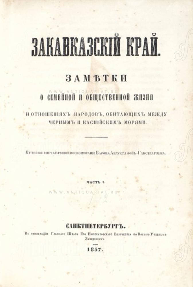 Заметки о семейной и общественной жизни и отношениях народов, обитающих между Черным и Каспийским морями. Путевые впечатления и воспоминания Барона Августа фон-Гакстгаузена.