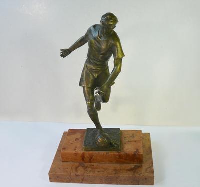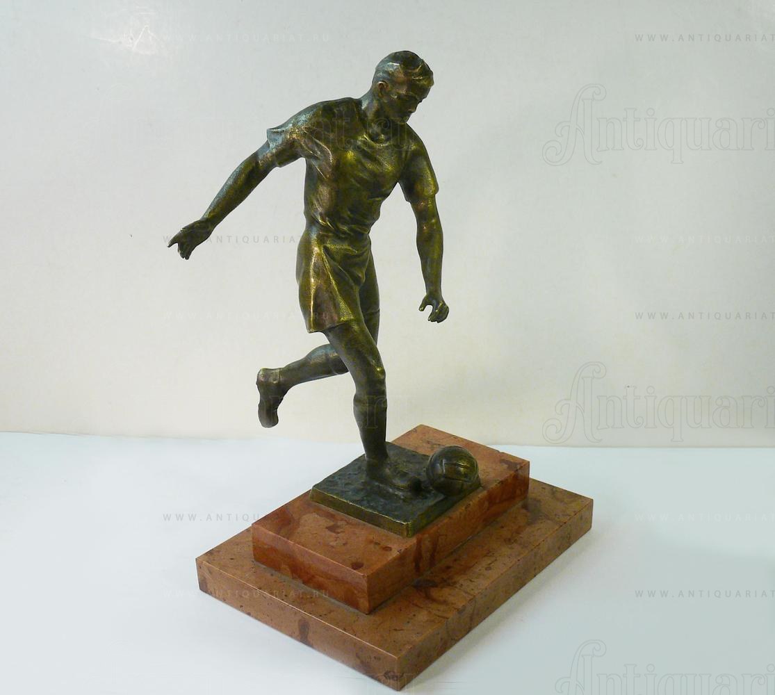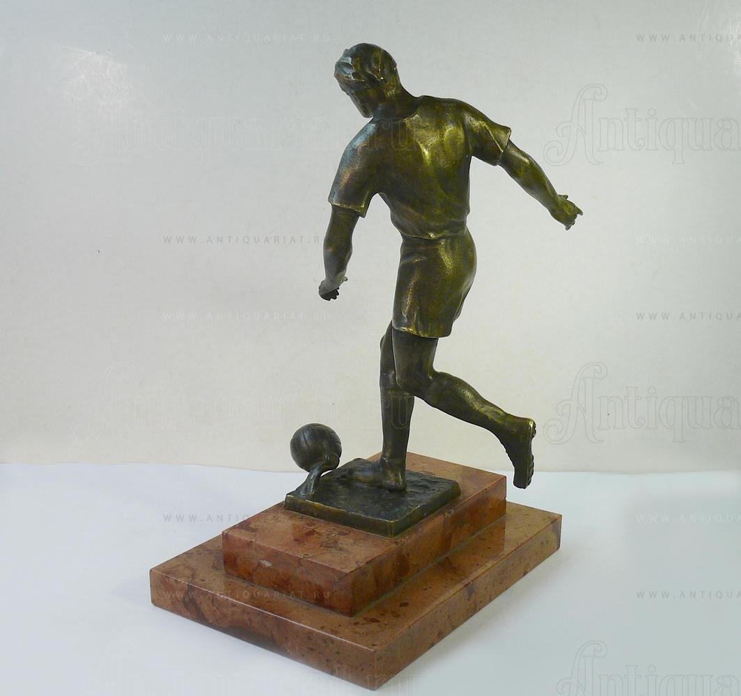 Бронзовая фигура футболиста на мраморной подставке.