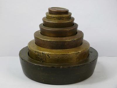 Разборные разновесы по типу матрешки выполнены из бронзового сплава. В наборе 7 шт.