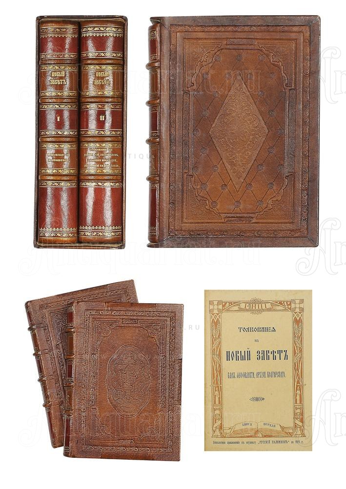 Два издания архиеп. Феофилакта: 1) Феофилакт. Благовестник: Толкование на Святые Евангелия блаж. Феофилакта, архиеп. Болгарского. СПб.: П.П. Сойкин, [1910]. — 768 с.; 23x17,5 см. В индивидуальном цельнокожаном переплёте конца ХХ века. Редкие загрязнения страниц. 2) Феофилакт. Толкования на Новый Завет блаженного Феофилакта, архиепископа Болгарского: [в 6 кн.].