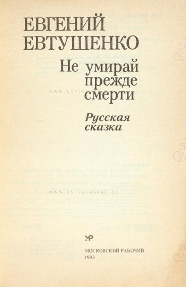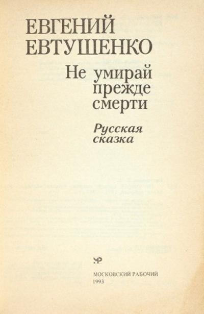 Евтушенко, Е. [автограф, предположительно адресованный Алле Пугачевой] Не умирай прежде смерти. Роман.