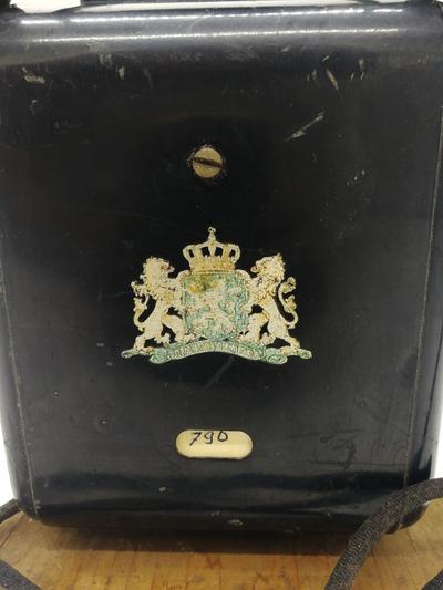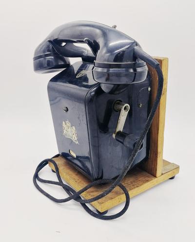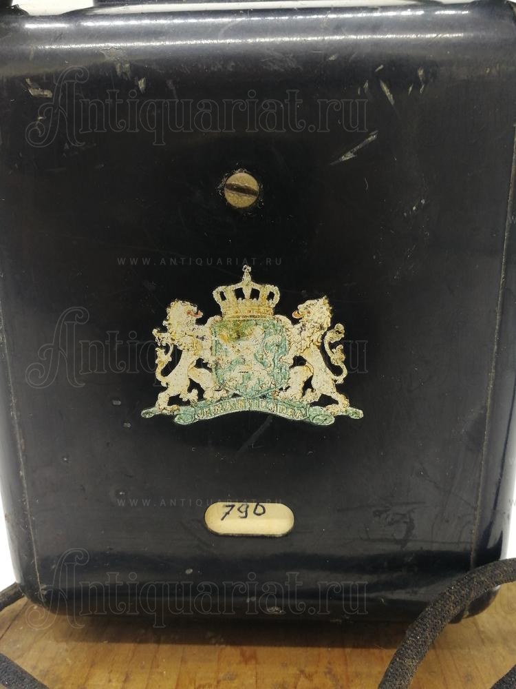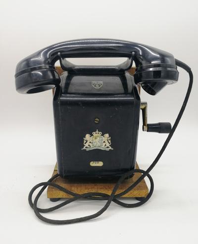Этот телефонный аппарат является аутентичным устройством, произведённым компанией Siemens & Halske, и представляет собой одну из вариаций знаменитой модели W28, созданной в 1920-х годах. Данная модель отличалась прочным литым корпусом, лаконичным и элегантным дизайном, характерным для предвоенного функционализма, а также высокой надёжностью, которая позволила использовать её в самых ответственных сферах. Отличительной чертой именно этого экземпляра является наличие геральдического герба, нанесённого на корпус, что указывает на его правительственное или дипломатическое предназначение. Судя по форме герба, изображающего двух львов, корону и щит, можно с высокой вероятностью утверждать, что телефон использовался в Государственном учреждении Королевства Нидерландов — возможно, в посольстве, консульстве, Министерстве иностранных дел или другом органе государственной власти. Не исключено и использование во дворце, в службах королевского двора или штабах вооружённых сил.