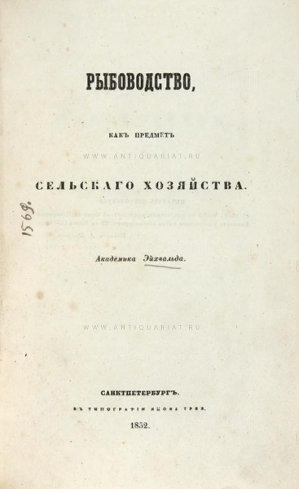 "Рыбоводство как предмет сельского хозяйства" Э.И. Эйхвальд