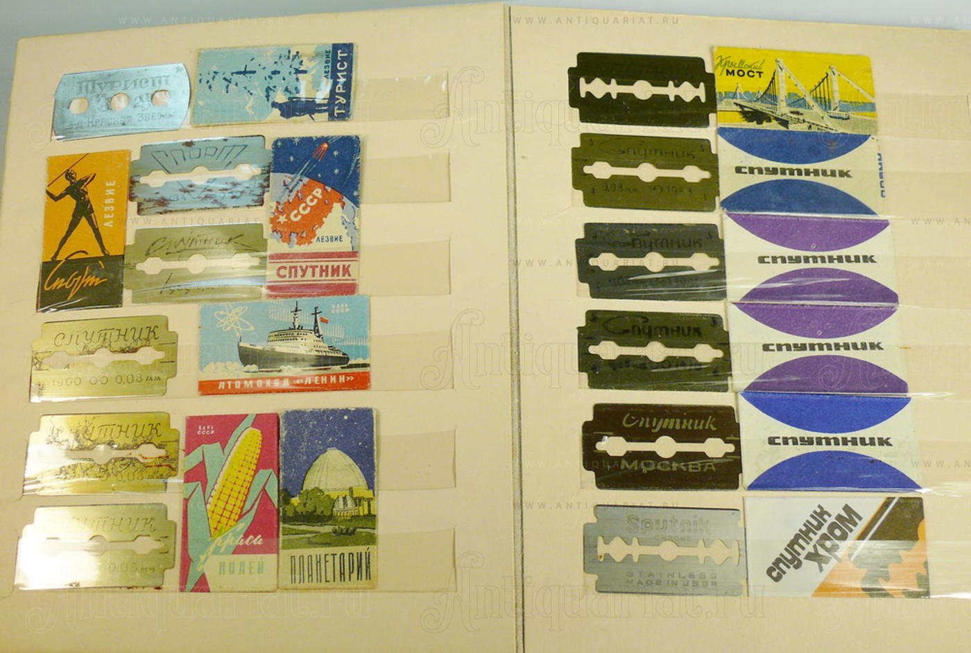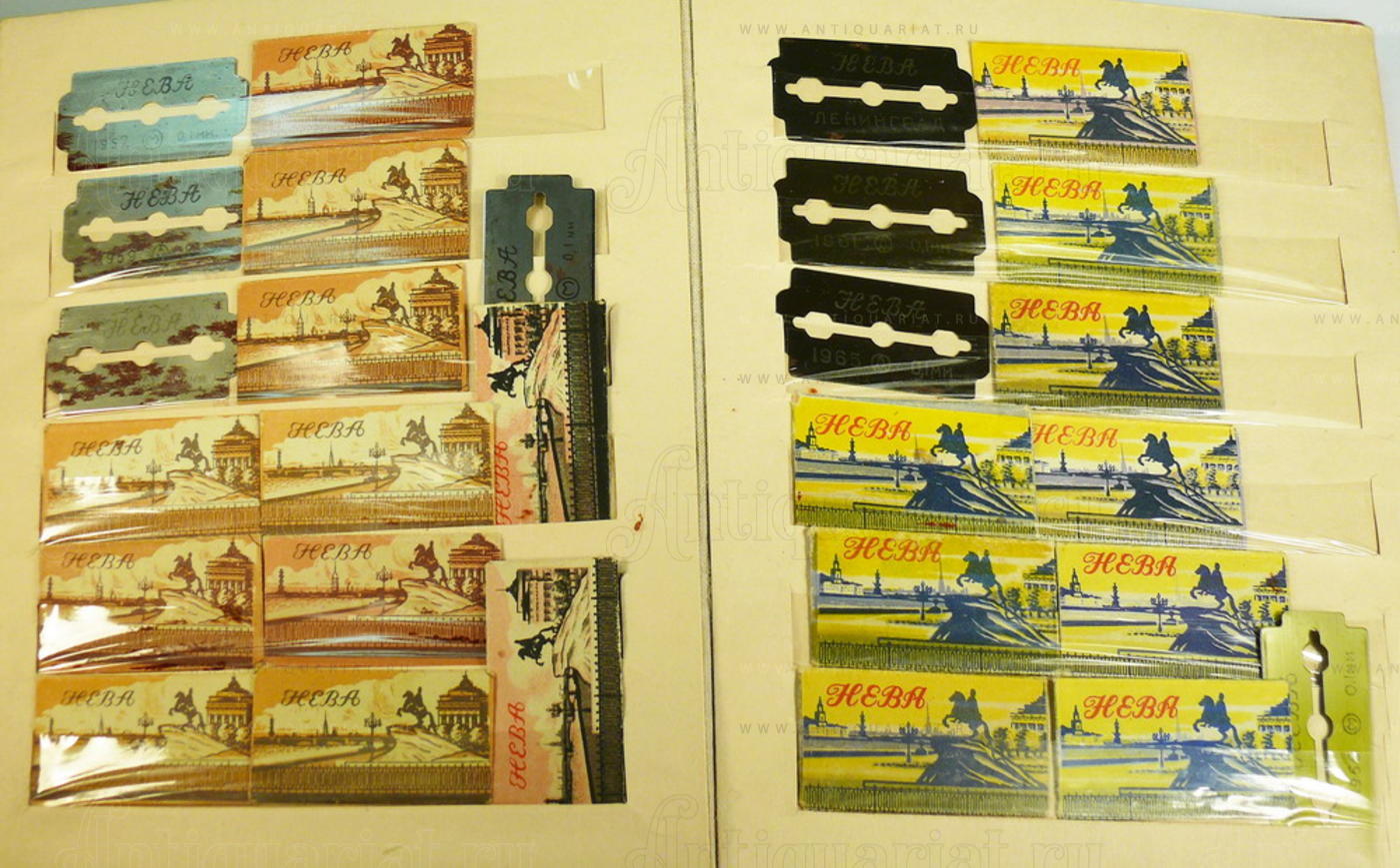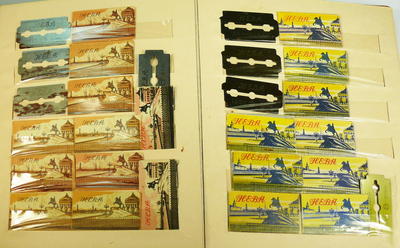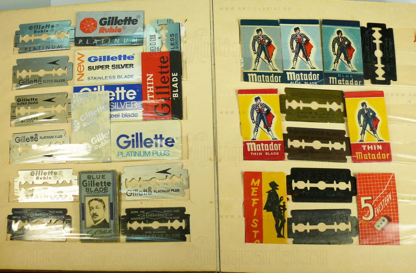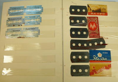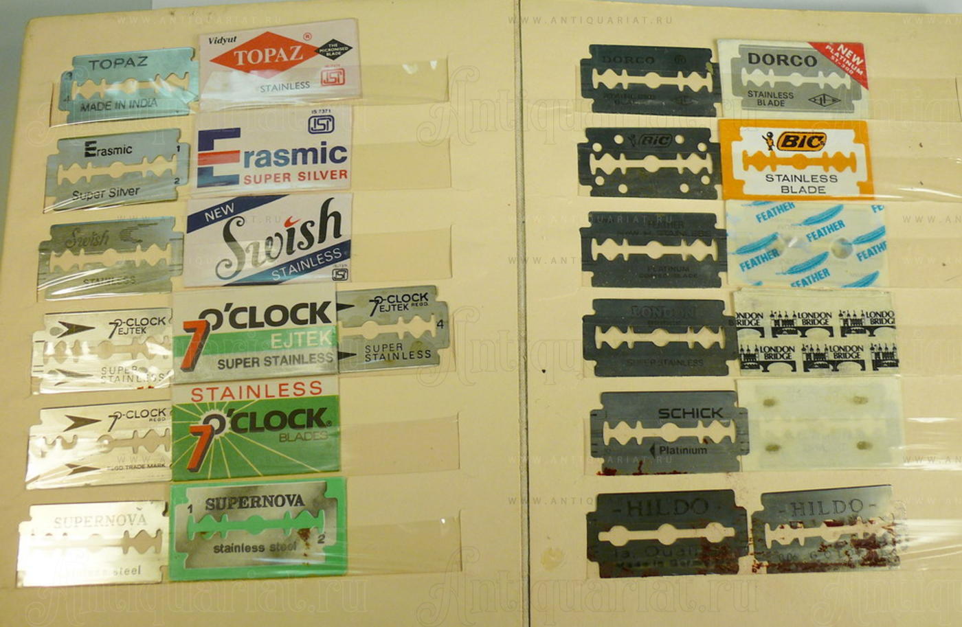 Всего 178 единиц, уложены в кляссер (по рядам, в каждом ряду образец лезвия без упаковки и такое же лезвие в упаковке).