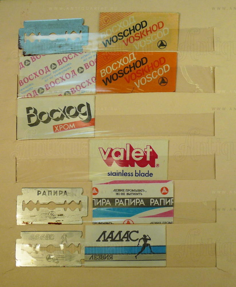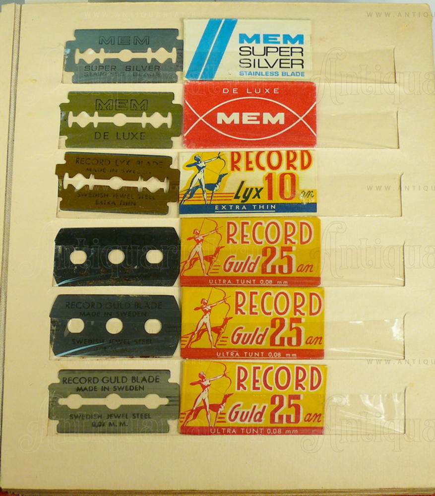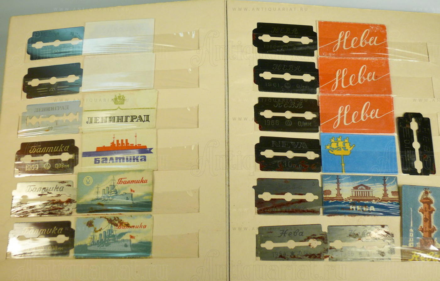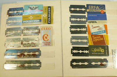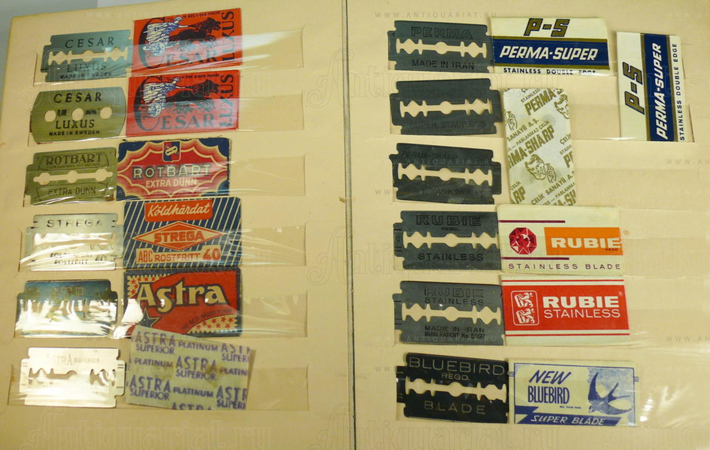 Всего 178 единиц, уложены в кляссер (по рядам, в каждом ряду образец лезвия без упаковки и такое же лезвие в упаковке).