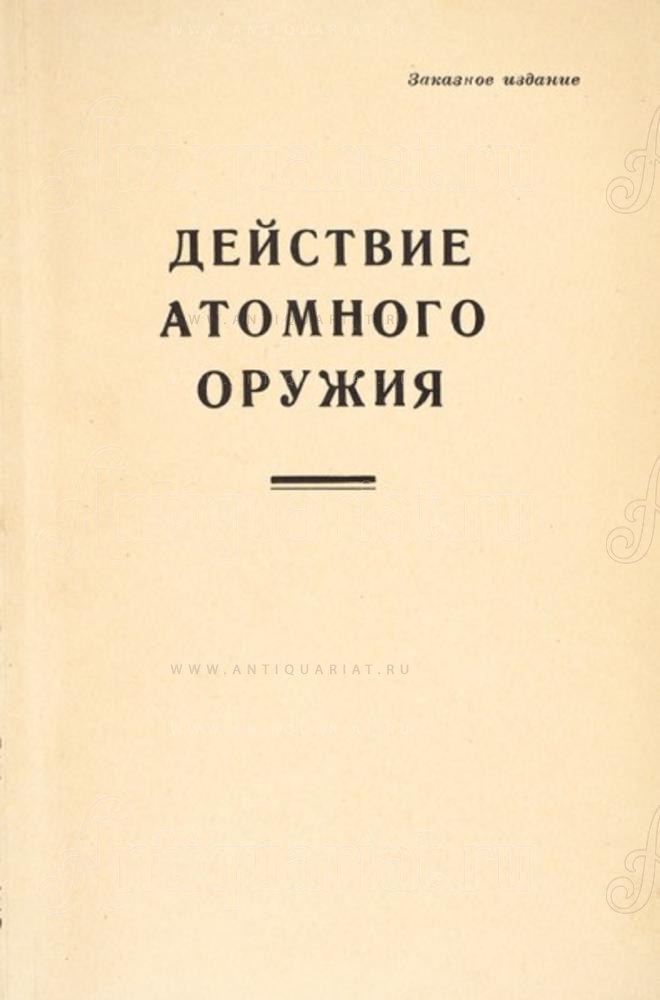 В издательской обложке. В хорошем состоянии. Редкое ведомственное издание, в продажу не поступавшее.Книга является единственным переводом английского издания «Эффекты атомного оружия», вышедшего из печати в 1950 году. Из предисловия директора Управления по вопросам гражданской мобилизации П. Ларсена: «Управление по планированию гражданской обороны и Национальное управление стратегических ресурсов рекомендуют эту книгу как источник научной информации для технического персонала, занимающегося планированием гражданской обороны, в том числе, подготовкой практических оборонных мероприятий при ведении атомной войны...».