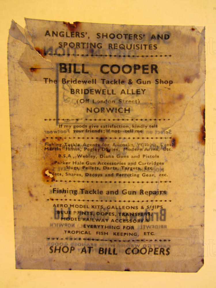 Катушка изготовлена английской фирмой BILL COOPER, которая занималась продажей снаряжения для рыбной ловли и оружия. Фирма существовала вплоть до 1970 года в городе Норвич (Англия),