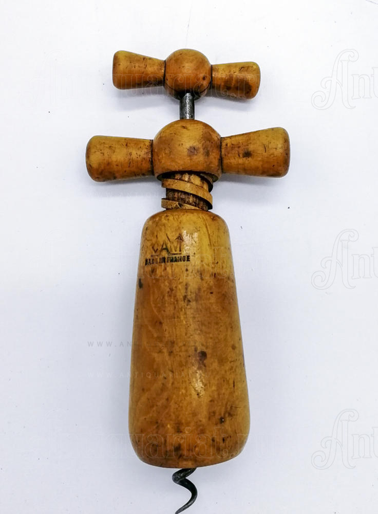 Надписи "CAM", "MADE IN FRANCE". Штопор деревянный механический, изготовлен во Франции. Двойная ручка. Выполнен из самшита. Рабочая часть оборудована проволочной спиралью