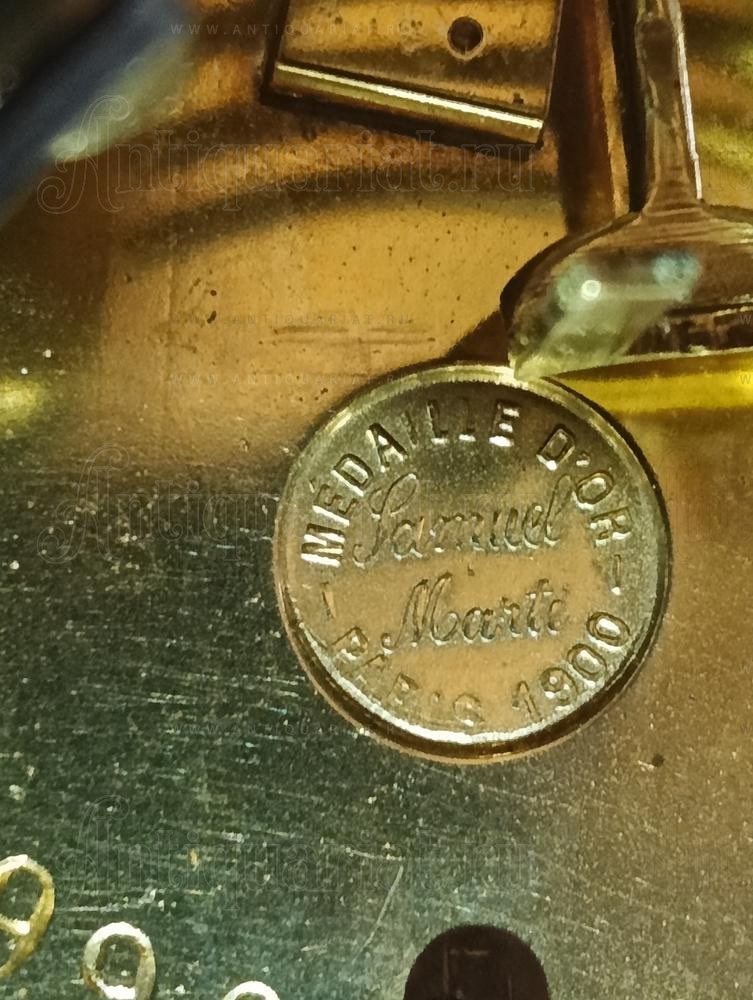 Клеймо на механизме "MEDAILLE D`OR Samuel Marte PARIS 1900", известного производителя часов Самуэля Марте, получившего золотую медаль в 1900м году, в Париже.
