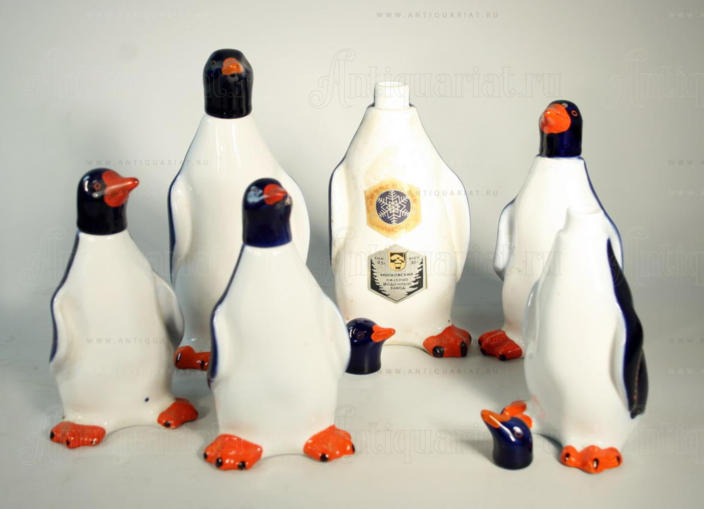 Шесть графинов - 2 графина высотой 23 см и 3 графина высотой 18 см.