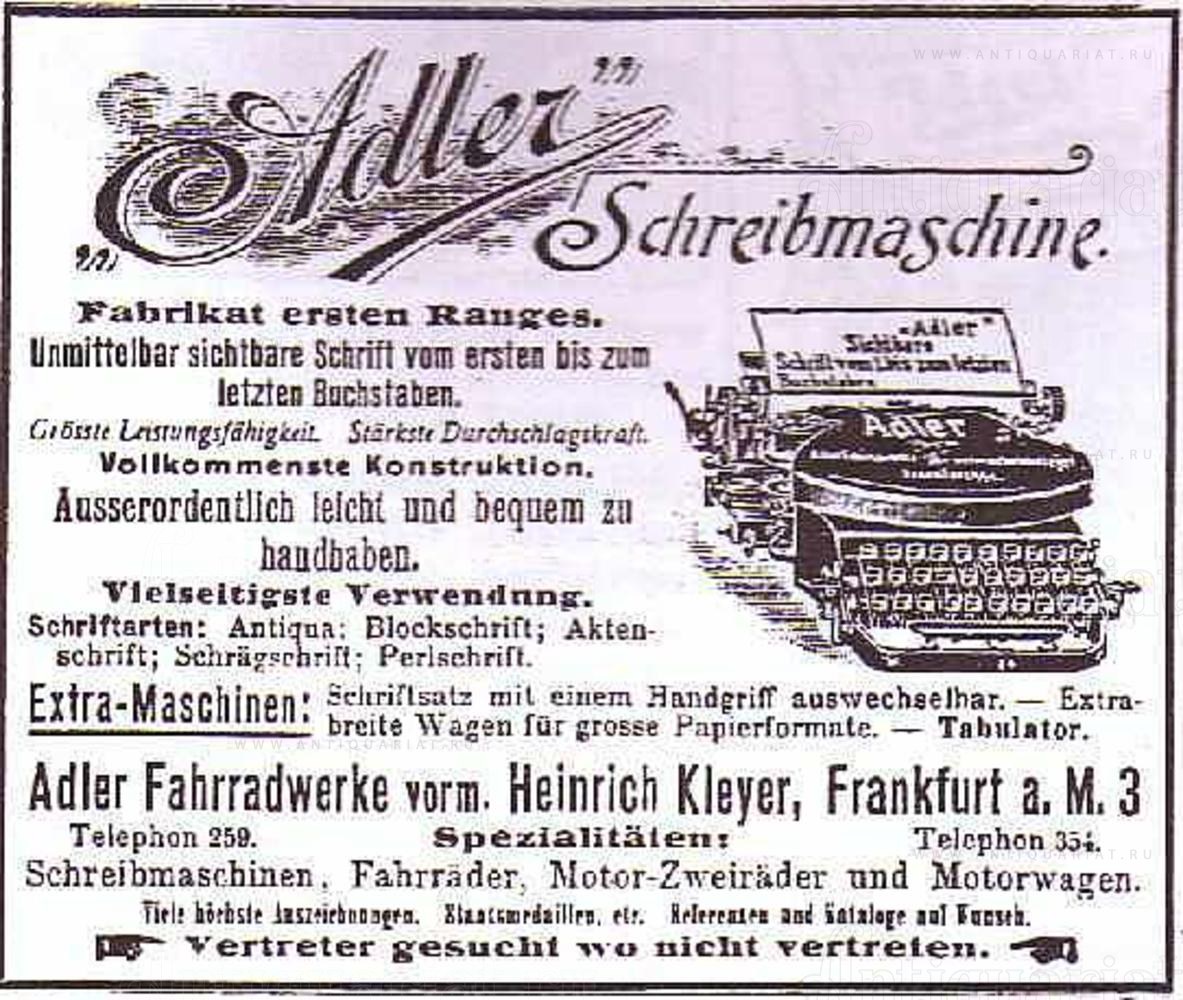Компания "Adlerwerke vorm. Heinrich Kleyer", была первым производителем печатных машин в Германии с 1898 года. Эта модель стала настоящим бестселлером в истории Triumph - Adler.