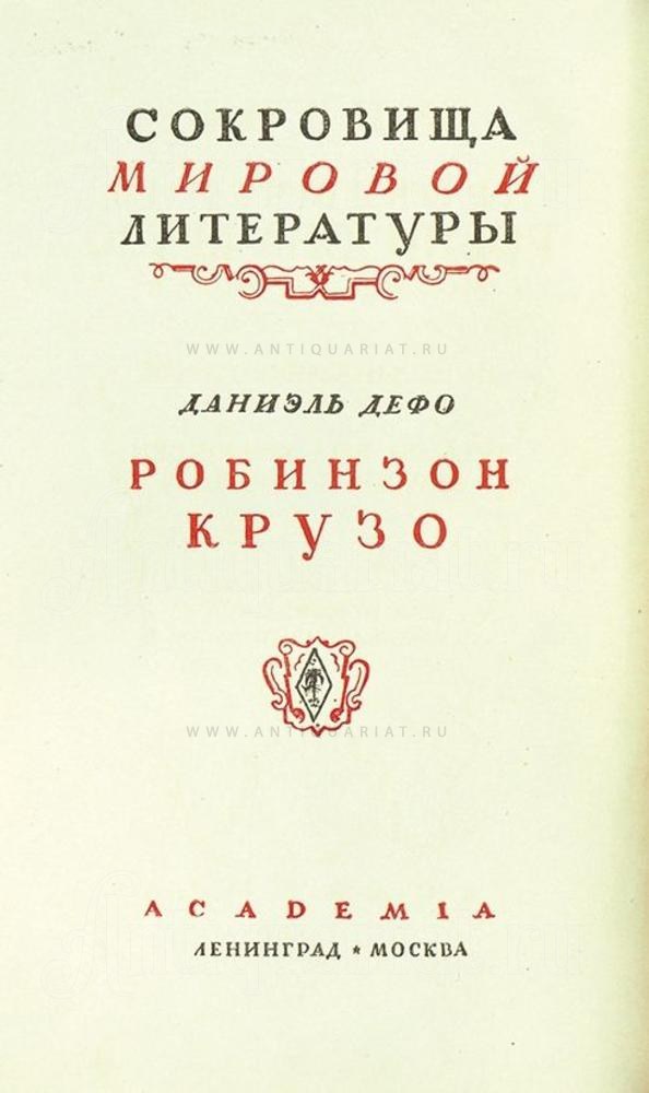 Дефо, Д. Жизнь и удивительные приключения Робинзона Крузо, моряка из Йорка, прожившего двадцать восемь лет в полном одиночестве на необитаемом острове у берегов Америки, близ устьев реки Ориноко, куда он был выброшен кораблекрушением, во время которого весь экипаж корабля кроме него погиб... / худ. С.М. Пожарский, Ж. Гранвиль. В 2 ч. Ч. 1-2. Л.: Academia, 1934. XXIX, 752 с., ил.
