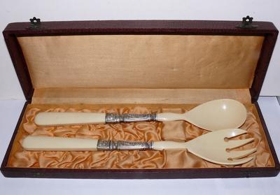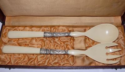 Салатный набор: вилка и ложка в оригинальном футляре.