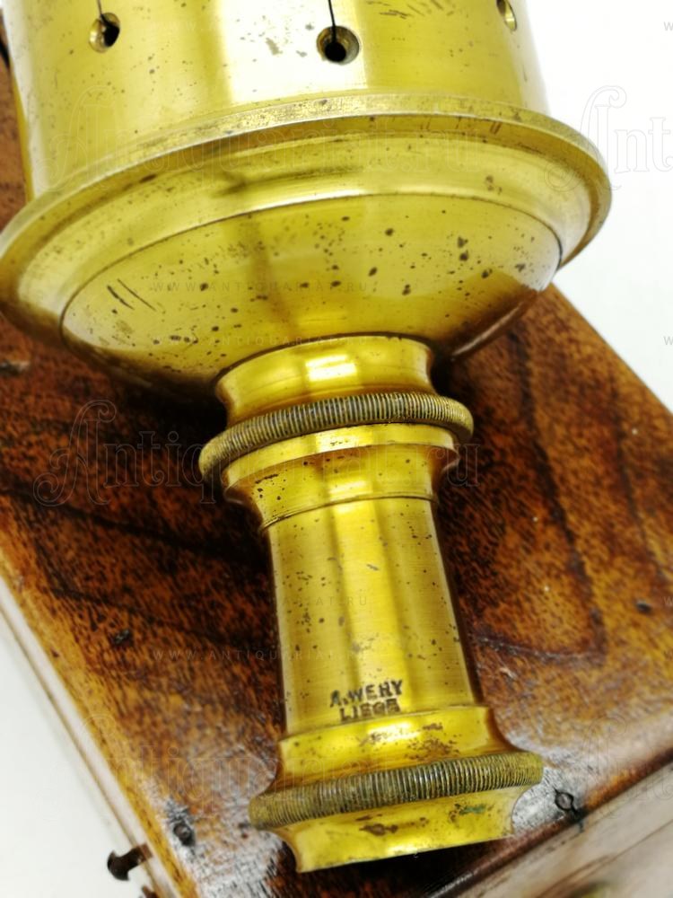 Геодезический прибор позволяет производить измерение и разбивку на произвольные углы (аналогично землемерной астролябии). Прибор в оригинальном футляре орехового дерева, без повреждений и хорошей сохранности. Указаны внешние размеры футляра. Клеймо на основании "A. WEKY, LIEGE" (изготовлен в городе Льеж, Бельгия).