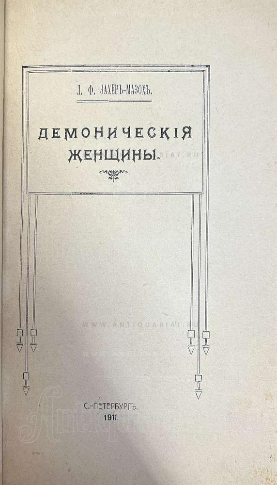 В данной книге так же воспевается сильные женщины имеющие власть по той или иной причине над мужчинами. Демонические женщины Захер-Мазоха осознанно или бессознательно проповедуют эстетику наслаждения через мучение, однако, в отличие от героинь де Сада, предпочитают, чтобы их одевали, а не раздевали.