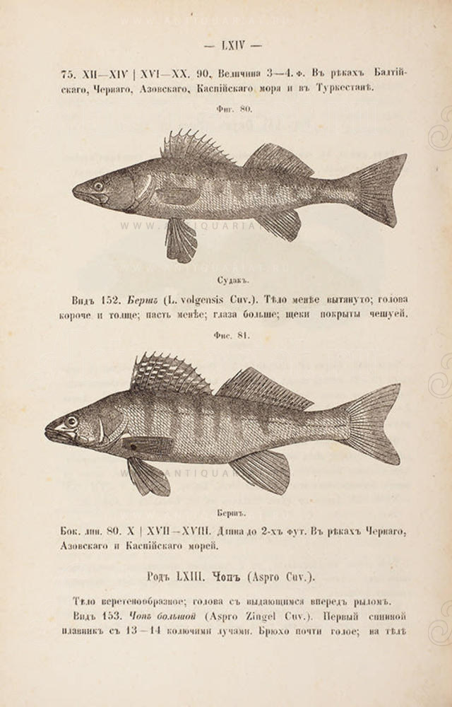 «Предлагаемое руководство для определения рыб, встречающихся в Европейской и Азиатской России, есть собственно извлечение из большого сочинения „Рыбы России“ с некоторыми добавлениями. Так здесь помещен словарь всех известных местных как русских, так и инородческих названий, которые также могут способствовать к определению вида рыбы...» (из предисловия автора). Кстати, и Шпага, и Чалбух, и Шеврига — это Севрюга, имевшая разные названия в разных местностях и у разных народов.
