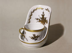 Довольно большого размера чайная пара, декорированная изображениями всемирно известных газет из разных стран: "Правда", "Le Figaro", "Die Presse" и многих других.
