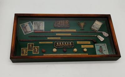 Инсталляция собрана в деревянном футляре на фоне зелёного сукна и закрыта стеклом.
