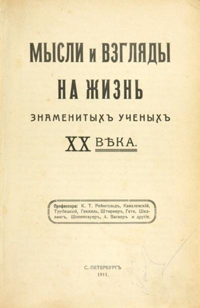 Профессора: К.Т. Рейнгольд, Кавалевский, Трубецкой, Геккель, Штирнер, Гете, Шеллинг, Шопенгауэр, А. Вагнер и другие.