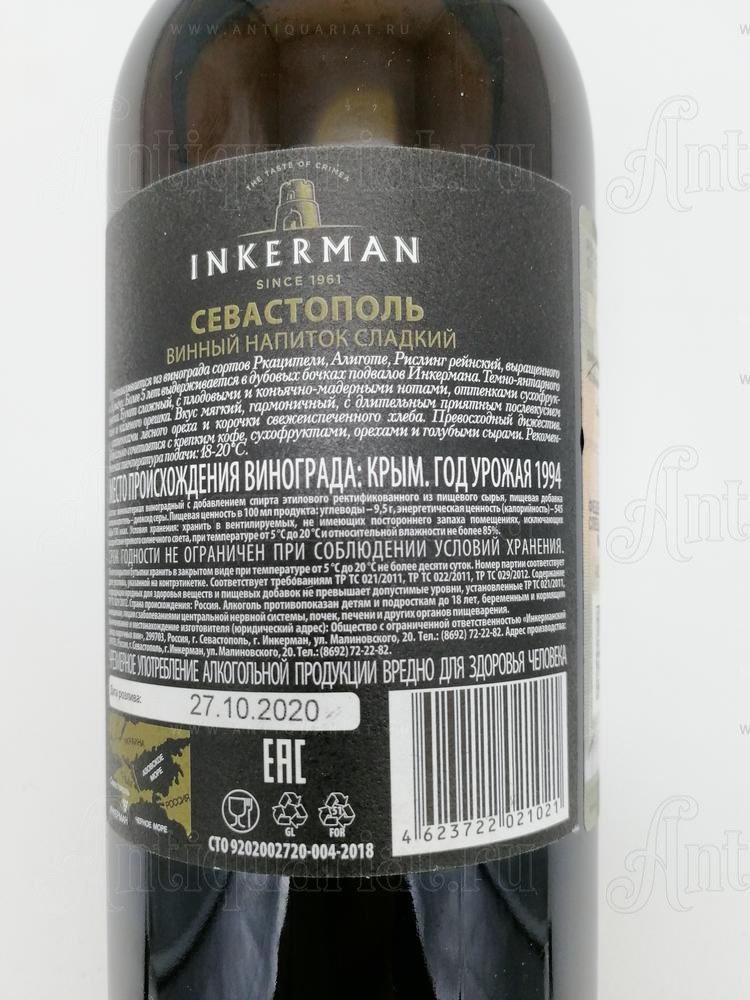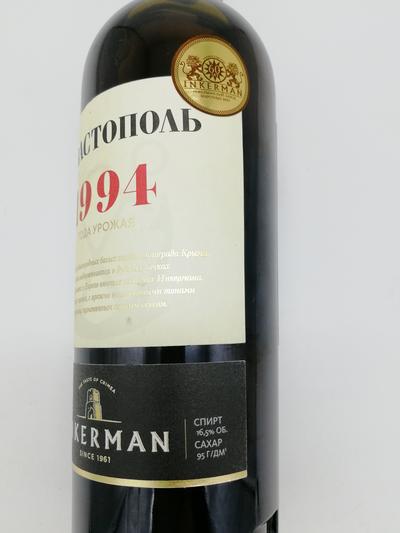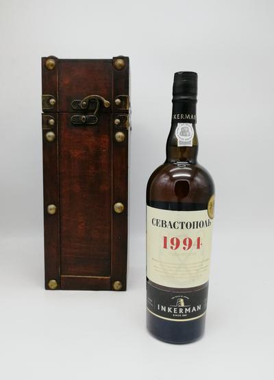 Изготовлен из белых сортов винограда. Год урожая 1994. Завод "INKERMAN" (Крым)