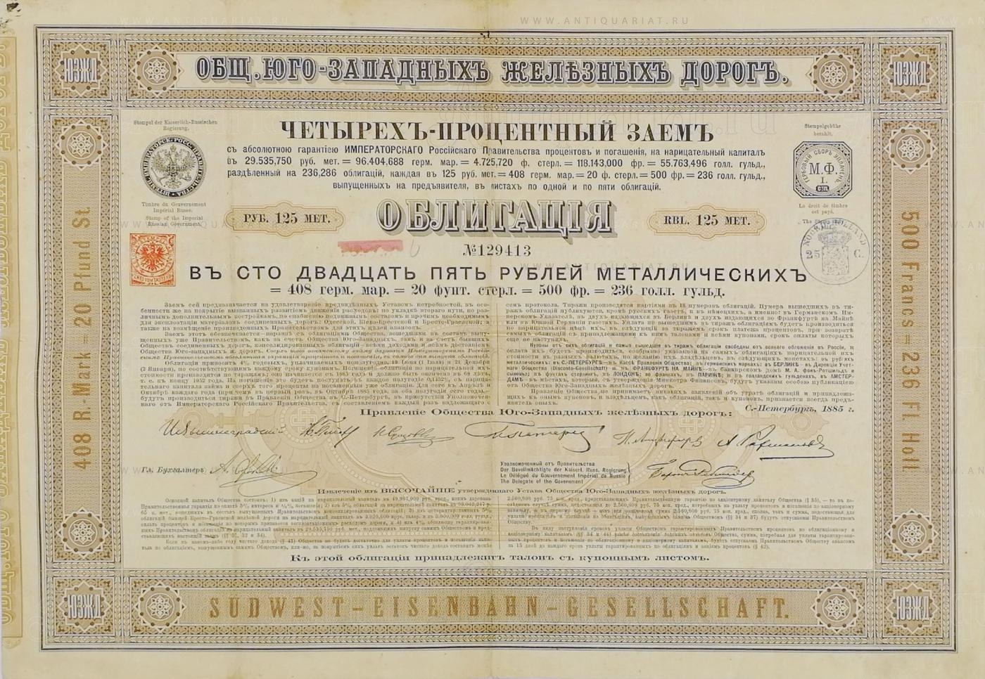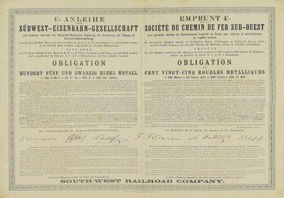 Облигация "ОБЩ. ЮГО-ЗАПАДНЫХЪ ЖУЛѢЗНЫХЪ ДОРОГЪ"