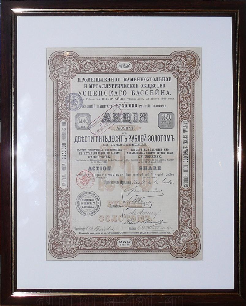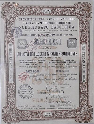Акция "Промышленное каменноугольное и металлургическое общество Успенского бассейна"