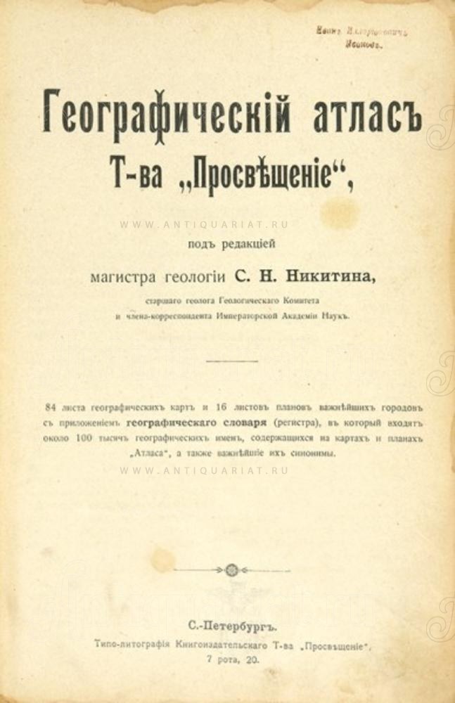 Географический атлас Т-ва «Просвещение»