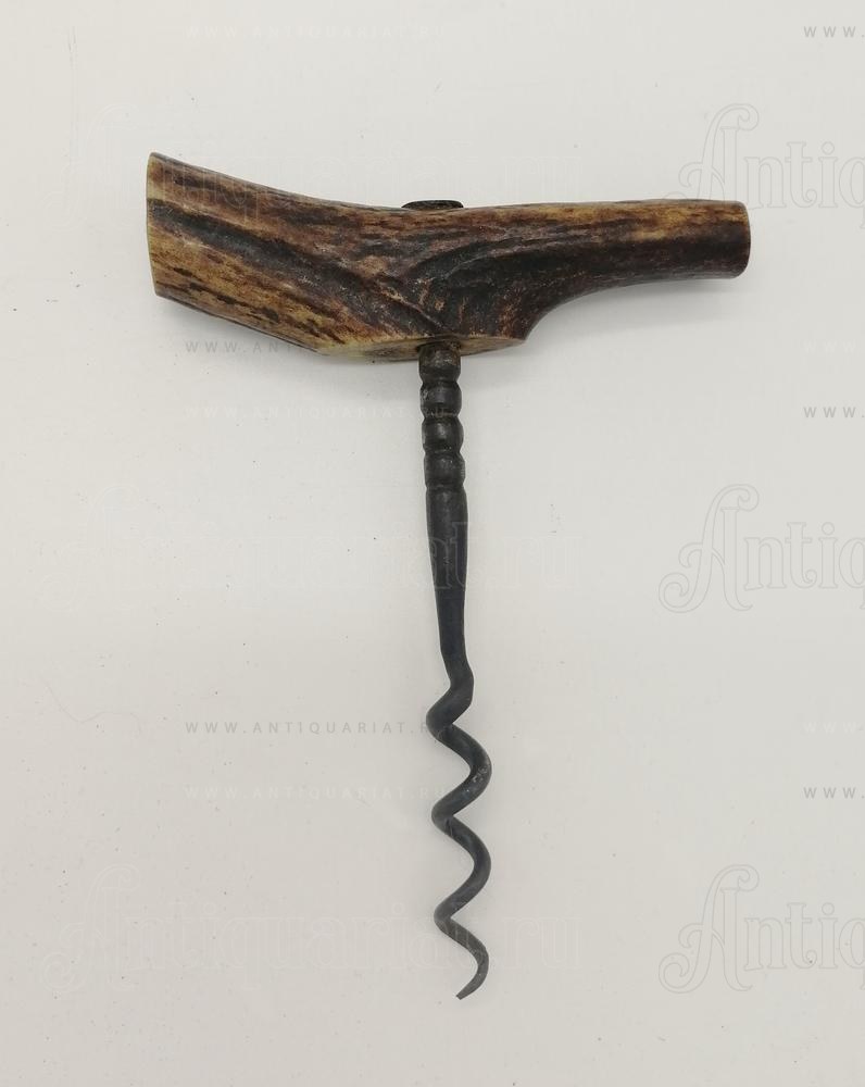 Т -образный штопор с прямой тягой по часовой стр.. Хватка выполнена из рога. Полностью исправен и в рабочем состоянии.