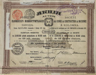 Акция "Общество Коломенского машиностроительного завода"