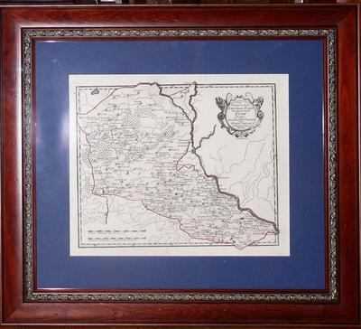 Гравюра на меди. Изображен Киев с прилегающими территориями в период польского владычества.