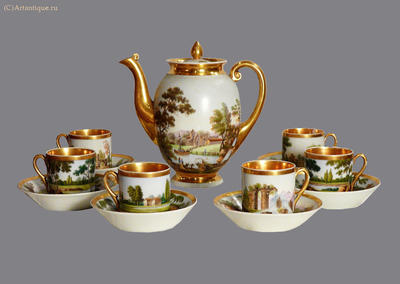 Выполненный в стиле «ампир» чайный сервиз редкой сохранности.