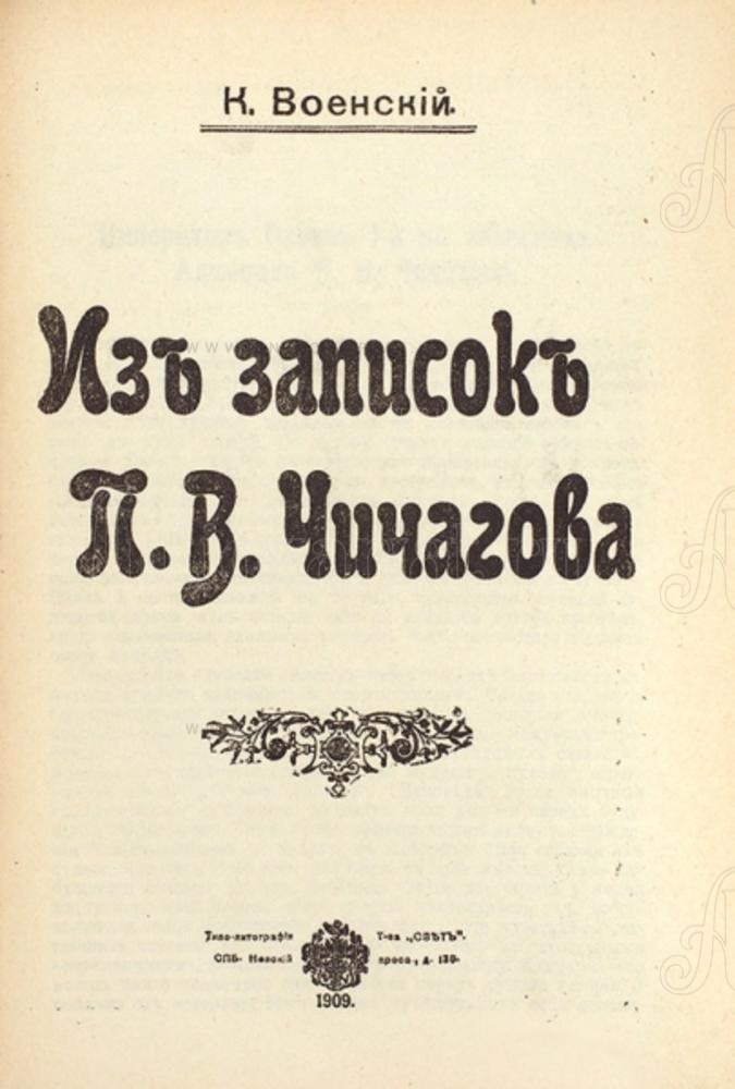 Военский, К. Из записок П.В. Чичагова. СПб.: Типо-лит. Т-ва «Свет», 1909. 23 с.