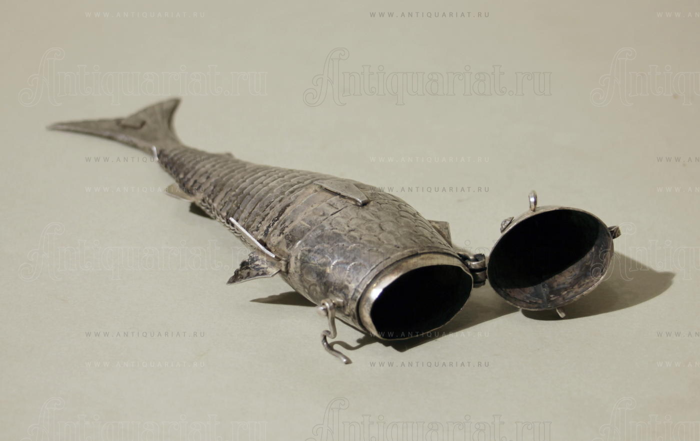 Имеет отделение для хранения реликвии (возможно молитвы). Части тела рыбы подвижны между собой..