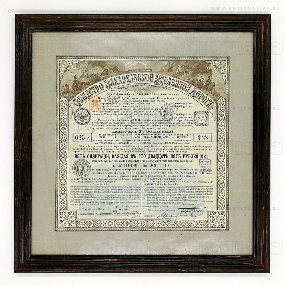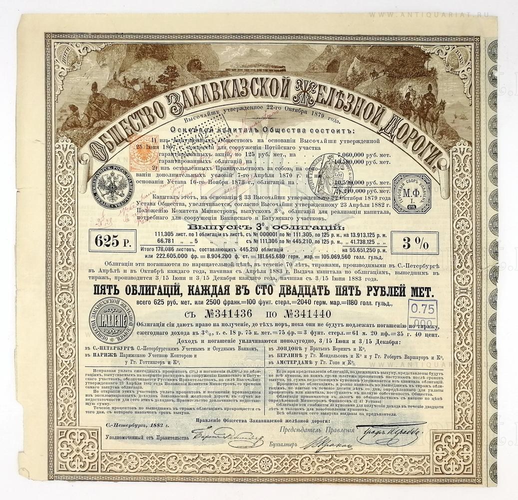 625 руб. Выпуск 3% облигацiй пять облигацiй, каждая въ сто двадцать пять рублей мет. съ №341436 по №341440
