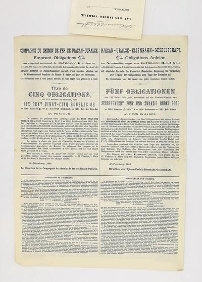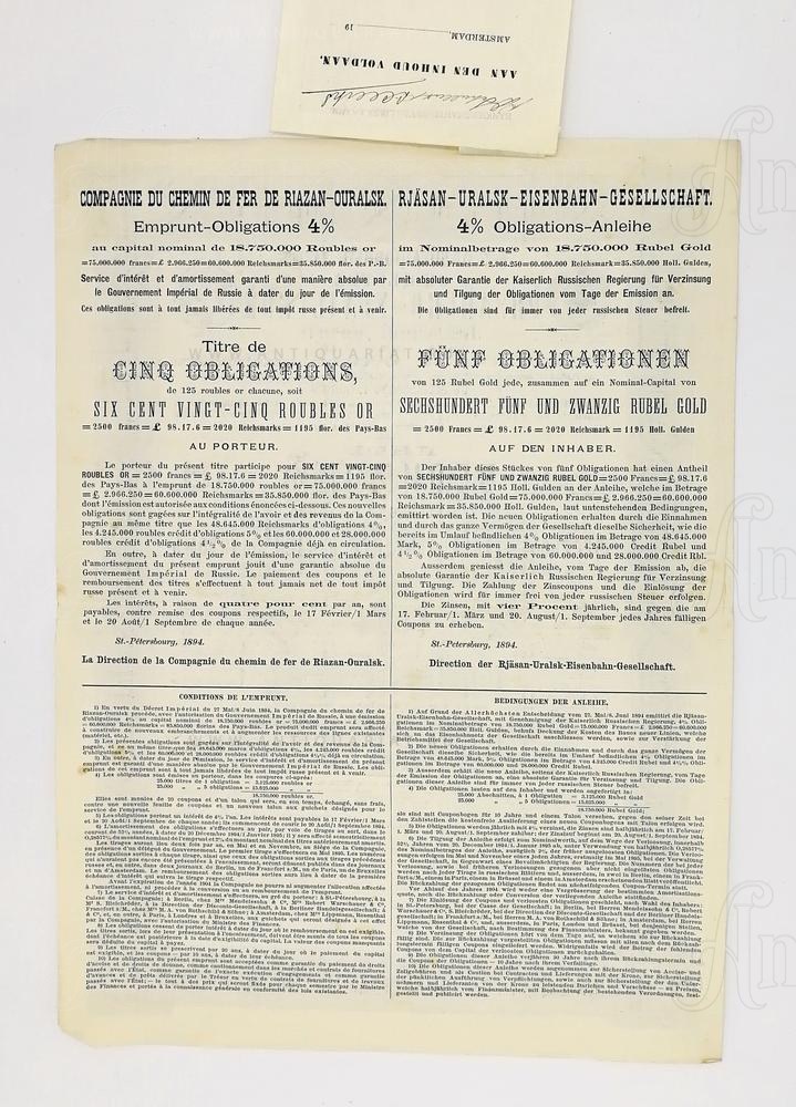 4% облигационный заём общества "Рязанско-Уральской железной дороги"