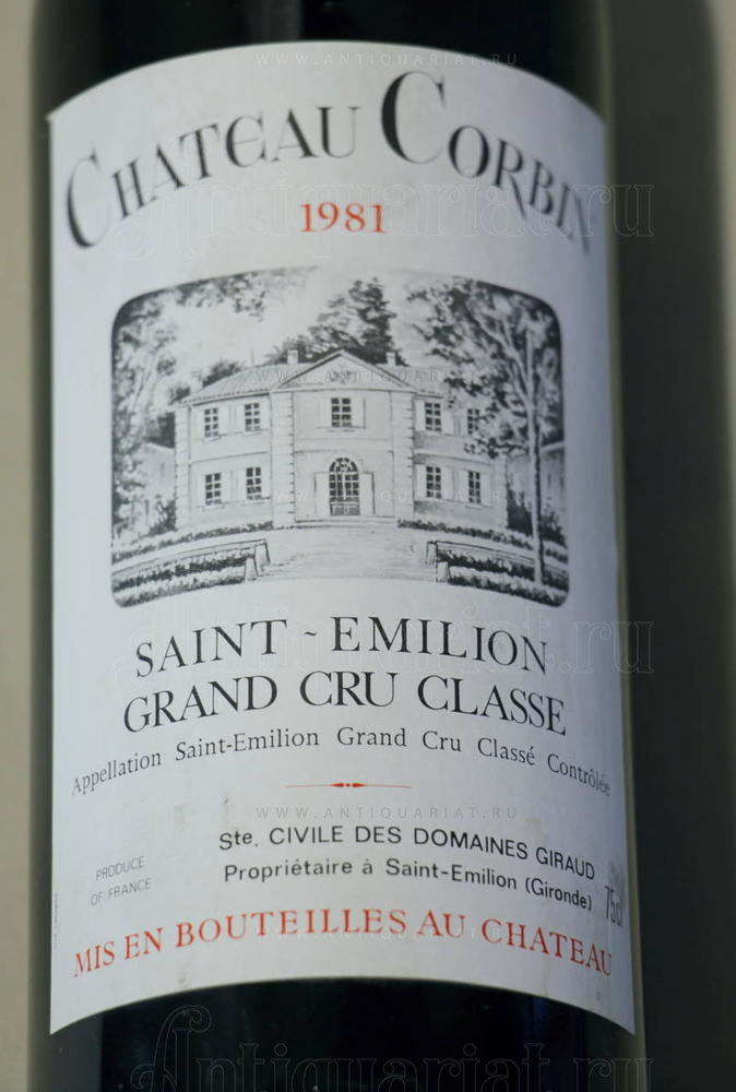Вино 1981 "Chateau Corbin" Grand Crû Classé