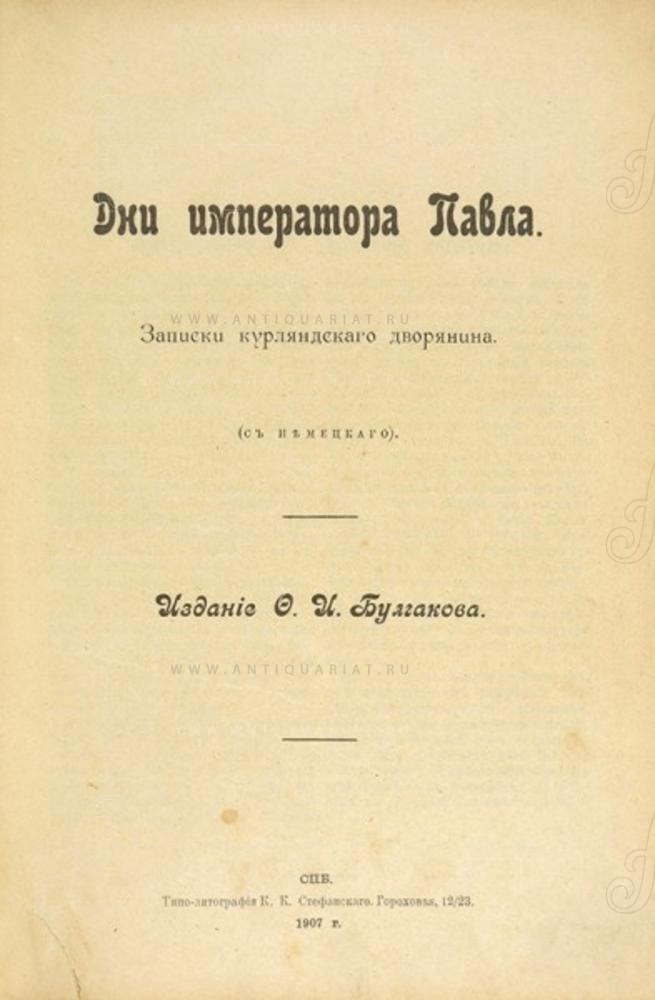 СПб.: Издание Ф.И. Булгакова, 1907. 70 с.