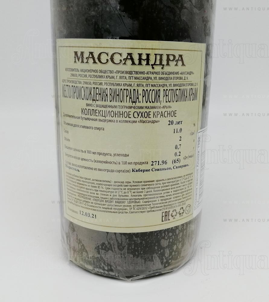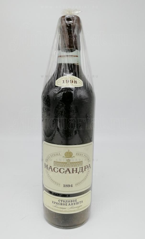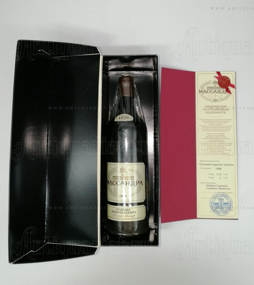 Изготовлено из винограда произрастающего в Алуштинской долине. Год урожая 1998. Завод "Массандра" (Крым)